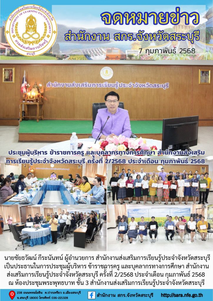 การประชุมผู้บริหาร ข้าราชการครู และบุคลากรทางการศึกษา สำนักงานส่งเสริมการเรียนรู้ประจำจังหวัดสระบุรี ครั้้งที่ 2/2568 ประจำเดือน กุมภาพันธ์ 2568