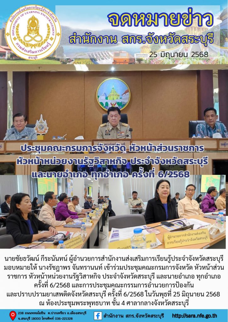 ประชุมคณะกรมการจังหวัด หัวหน้าส่วนราชการ หัวหน้าหน่วยงานรัฐวิสาหกิจ ประจำจังหวัดสระบุรี และนายอำเภอ ทุกอำเภอ ครั้งที่ 6/2568