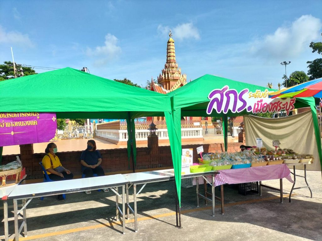 ให้กำลังใจผู้ประกอบการของ สกร.ระดับอำเภอเมืองสระบุรี และ สกร.ระดับอำเภอหนองแค ในการนำผลิตภัณฑ์สินค้าร่วมจำหน่ายงานตลาดพาณิชย์วันจันทร์ MONDAY MARKET