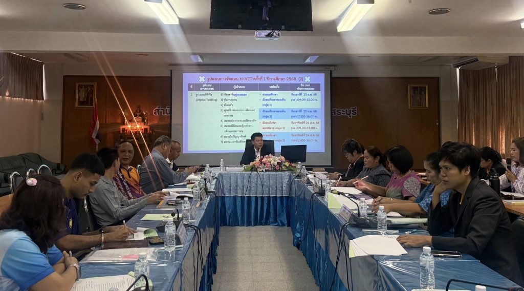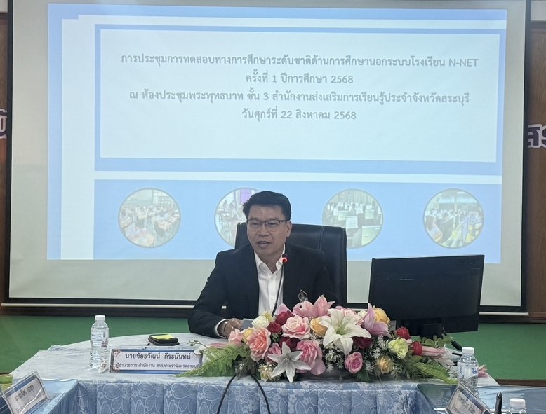 วันที่ 22 สิงหาคม 2568 นายชัยธวัฒน์ กีระนันทน์ ผู้อำนวยการ สำนักงานส่งเสริมการเรียนรู้ประจำจังหวัดสระบุรี เป็นประธานในการประชุมคณะกรรมการจัดสอบการทดสอบทางการศึกษาระดับชาติ ด้านการศึกษานอกระบบโณงเรียน (N-NET) ครั้งที่ 1 ปีการศึกษา 2568 ณ ห้องประชุมพระพุทธบาท ชั้น 3 สำนักงานส่งเสริมการเรียนรู้ประจำจังหวัดสระบุรี