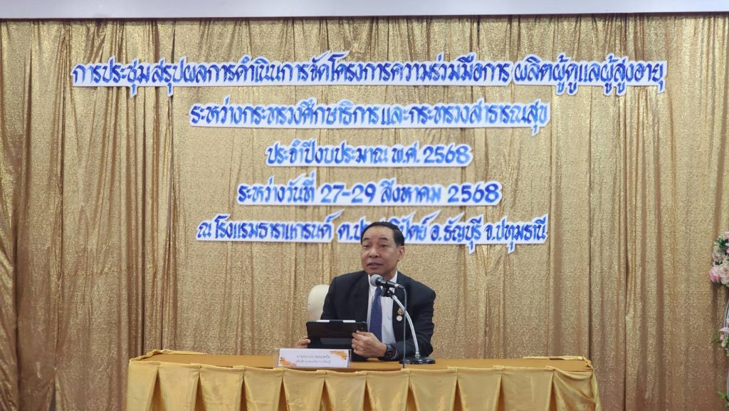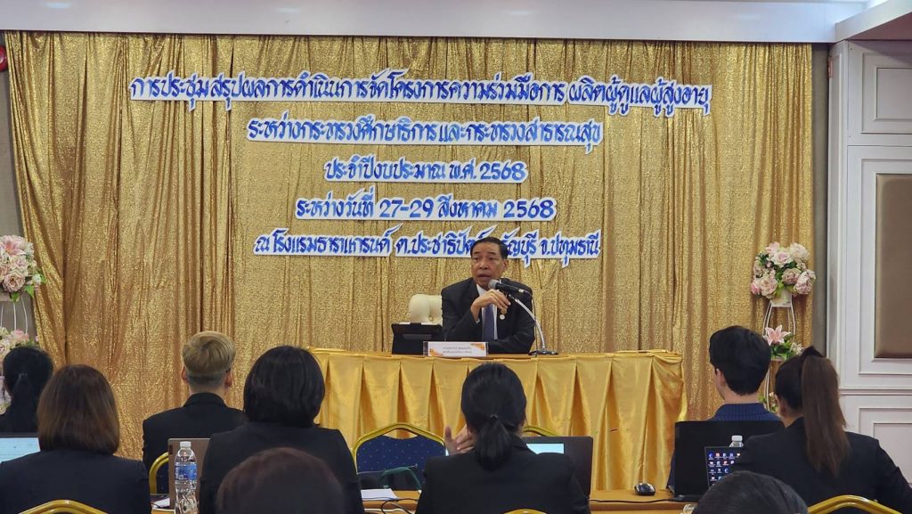 ประชุมสรุปผลการดำเนินการจัดโครงการความร่วมมือการผลิตผู้ดูเเลผู้สูงอายุ ระหว่างกระทรวงศึกษาธิการเเละกระทรวงสาธารณสุข ประจำปีงบประมาณ พ.ศ. ๒๕๖๘