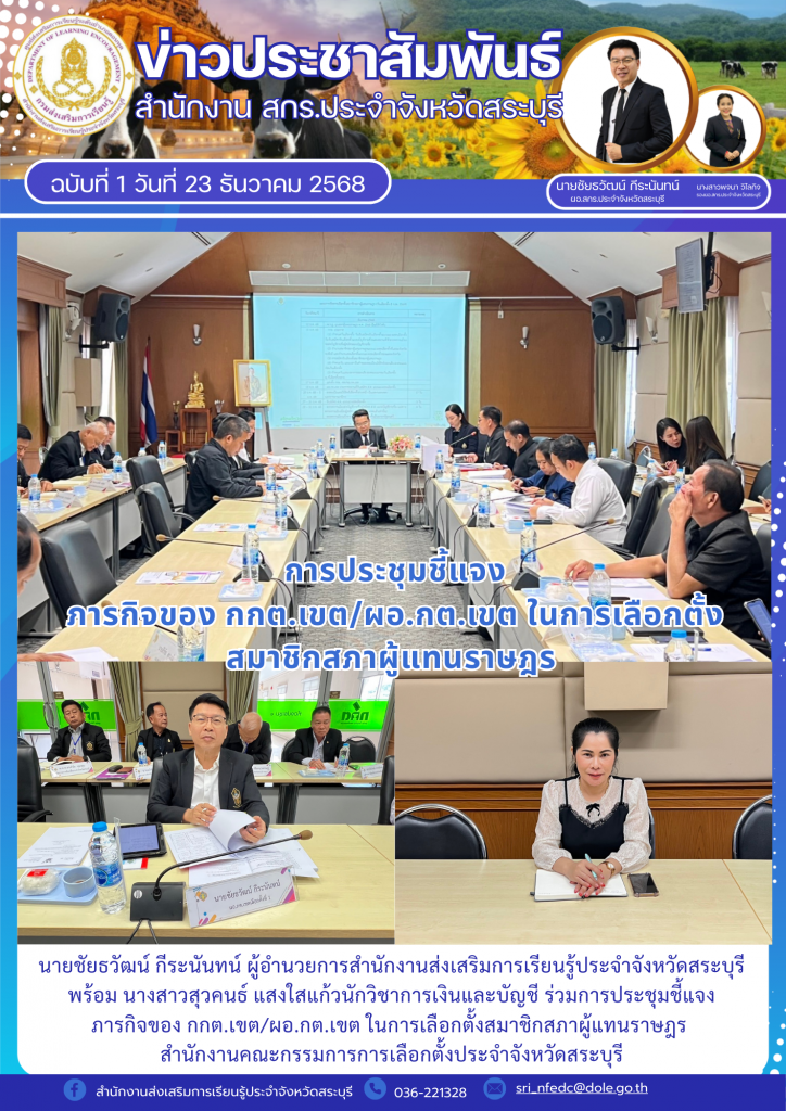 วันที่ 23 ธันวาคม 2568 นายชัยธวัฒน์ กีระนันทน์ ผู้อำนวยการสำนักงานส่งเสริมการเรียนรู้ประจำจังหวัดสระบุรี พร้อม นางสาวสุวคนธ์ แสงใสแก้ว