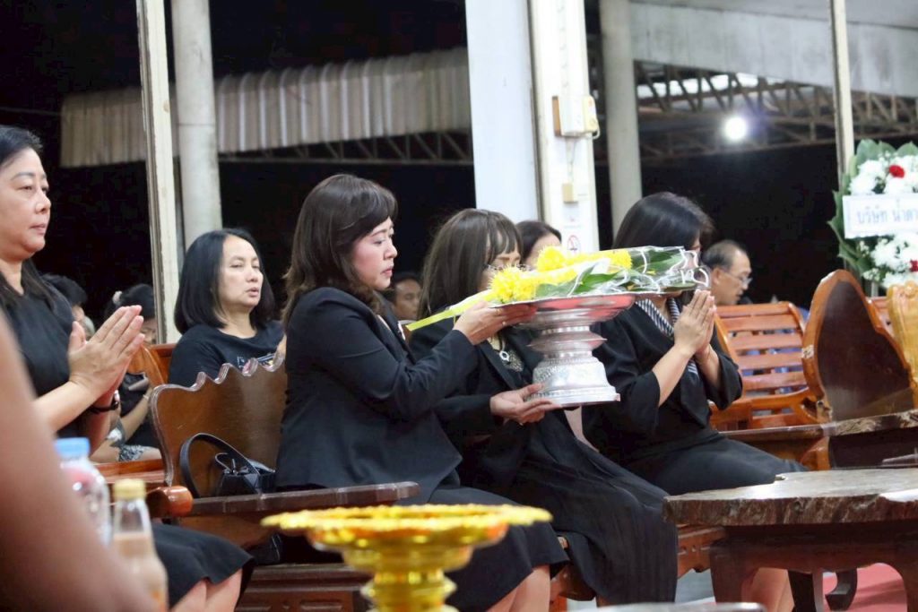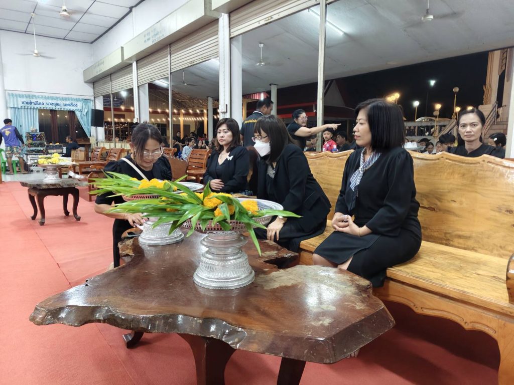 ร่วมเป็นเจ้าภาพสวดพระอภิธรรมศพ มารดา ของนางสาวรัตติยา บุญเทศ ตำแหน่ง ครูศูนย์การเรียนรู้ระดับตำบลแสลงพัน