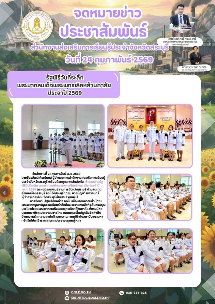 พ.ศ. 2569 ณ หอประชุมศูนย์ราชการจังหวัดสระบุรี ตำบลตะกุด อำเภอเมืองสระบุรี จังหวัดสระบุรี โดยมี นายบัญชา เชาวรินทร์