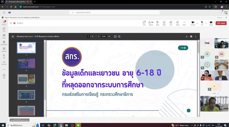 วันที่ ๑๗ ตุลาคม ๒๕๖๗ นายชัยธวัฒน์ กีระนันทน์ ผู้อำนวยการ สำนักงานส่งเสริมการเรียนรู้ประจำจังหวัดสระบุรี มอบหมายให้นายกันต์พจน์ มาศสถิตย์ นักเทคโนโลยีสารสนเทศ เข้าร่วมประชุมการสำรวจข้อมูลเด็กและเยาวชน อายุ ๖-๑๘ ปี ที่หลุดออกจากระบบการศึกษา ในรูปแบบออนไลน์ด้วยระบบ Microsoft Teams ณ สำนักงานส่งเสริมการเรียนรู้ประจำจังหวัดสระบุรี
